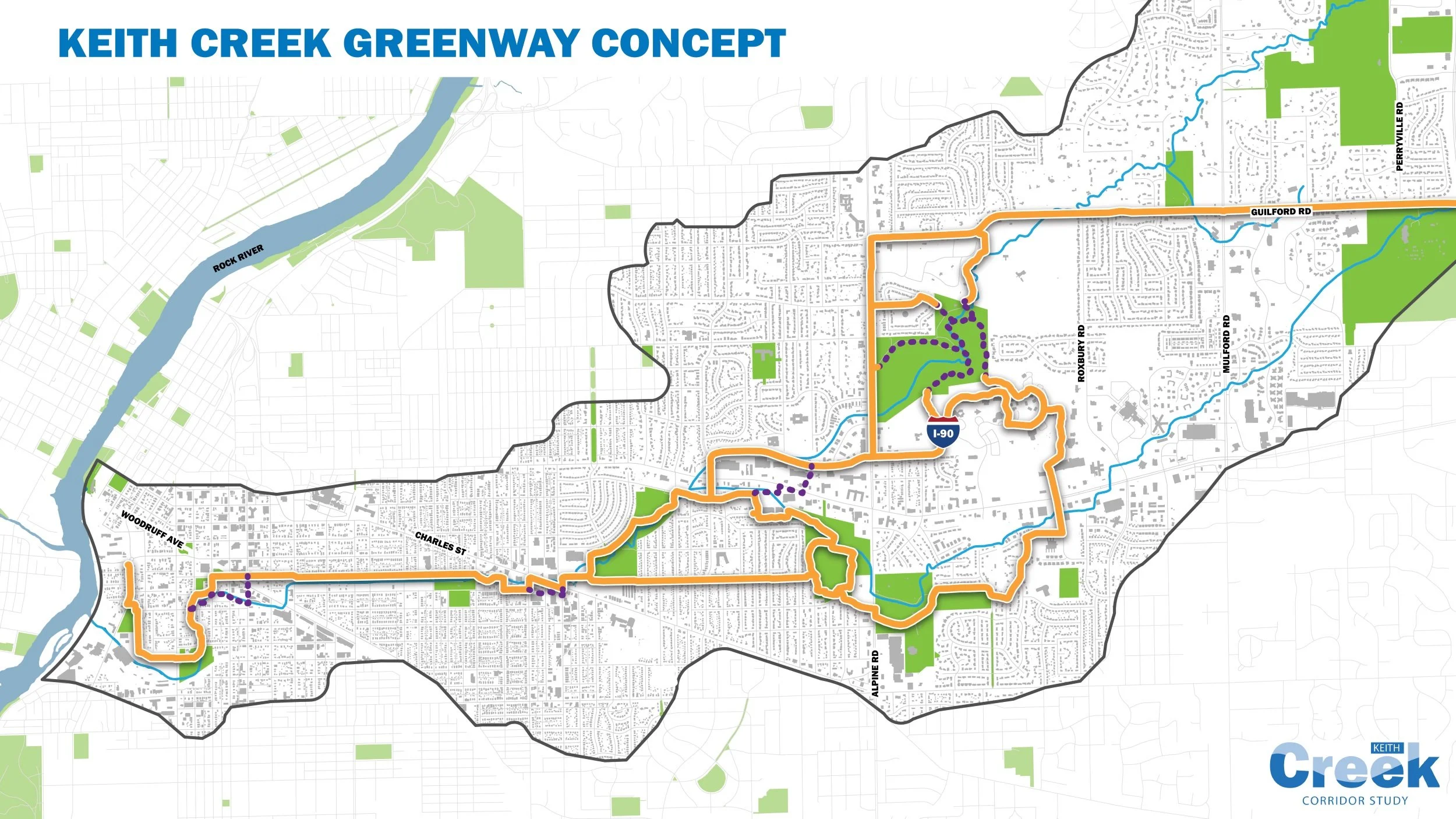 Region 1 Planning Council partnered with Studio GWA, The Lakota Group, Strand Associates, and Hey & Associates to conduct a corridor study of Keith Creek. The study creates a framework for improvements and developments throughout the Keith Creek watershed, which includes two branches of creek channel and over 14 miles of drainage area.